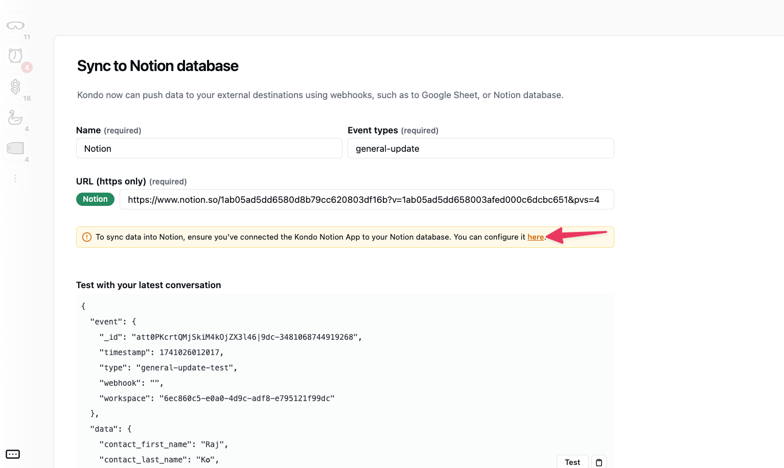 - general-update checked: will update the sheet every time there is a change in Kondo e.g. new messages sent, received, labels or notes updated etc.